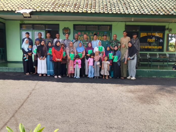 Bungkus Suryaman, Kepala Desa Jatimulya Jaenal Muttakin, serta ahli waris korban musibah pemusnahan Muhandak.*(Penrem062/Tn).DB