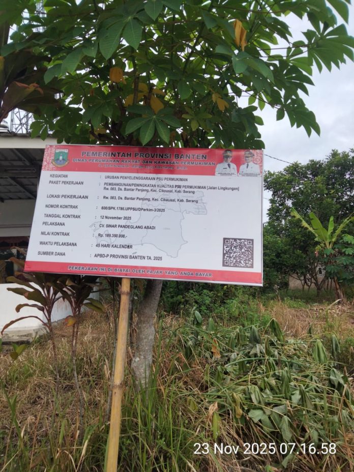 Beranda Nasional Provinsi Banten Diduga Pembangunan Peningkatan Kwalitas PSU Permukiman Jalan Lingkungan Di Desa Bantar Panjang...